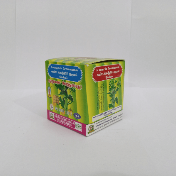 C Kandangkathiri Cough Lehiyam is a traditional Siddha & Ayurvedic formulation made from the powerful herb Kandangkathiri (Solanum xanthocarpum), blended with natural ingredients like honey and herbal extracts. Widely known for its respiratory health benefits, this herbal lehiyam helps relieve cough, cold, asthma, and other breathing-related discomforts naturally.