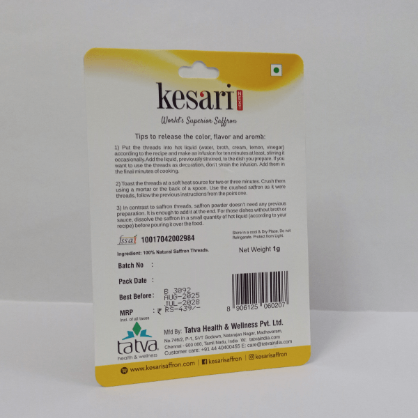 Kesari Saffron from Tatva Health & Wellness Pvt Ltd is 100% pure, handpicked saffron (Kesar) known for its rich aroma, natural flavor, and powerful health benefits. Sourced from the finest saffron flowers, these premium threads add a touch of luxury to your recipes while supporting overall wellness.