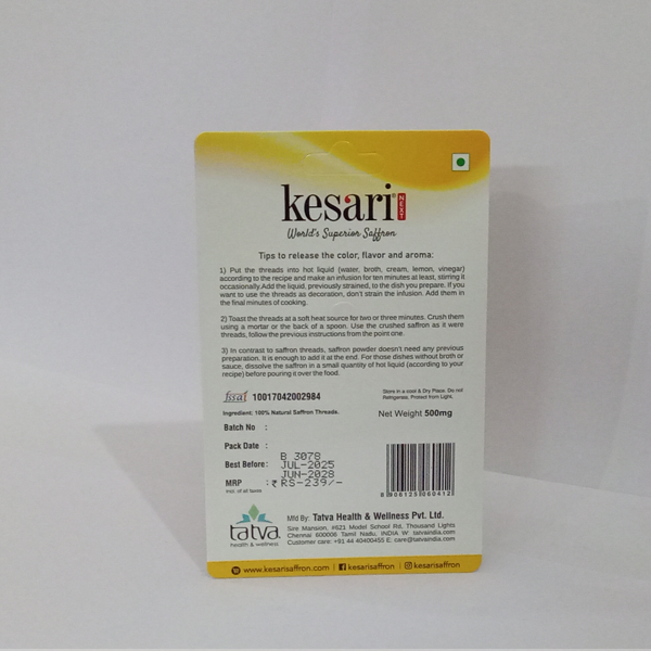Kesari Saffron from Tatva Health & Wellness Pvt Ltd is 100% pure, handpicked saffron (Kesar) known for its rich aroma, natural flavor, and powerful health benefits. Sourced from the finest saffron flowers, these premium threads add a touch of luxury to your recipes while supporting overall wellness.