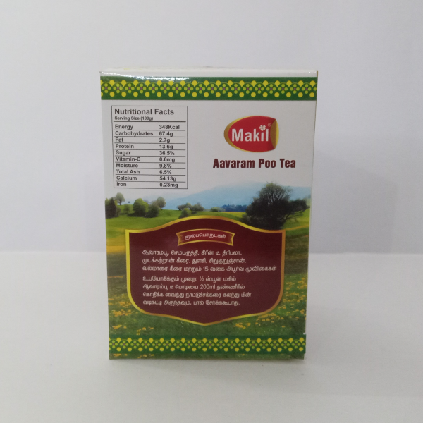 Makil Aavaram Poo Tea 100g by Dharani Herbals is a traditional herbal detox tea made from handpicked Aavaram Poo flowers. Widely used in Siddha and Ayurveda, this tea helps regulate blood sugar levels, purifies the body, enhances skin clarity, and supports healthy digestion. With its natural cooling effect and antioxidant richness, it is a refreshing daily wellness drink.