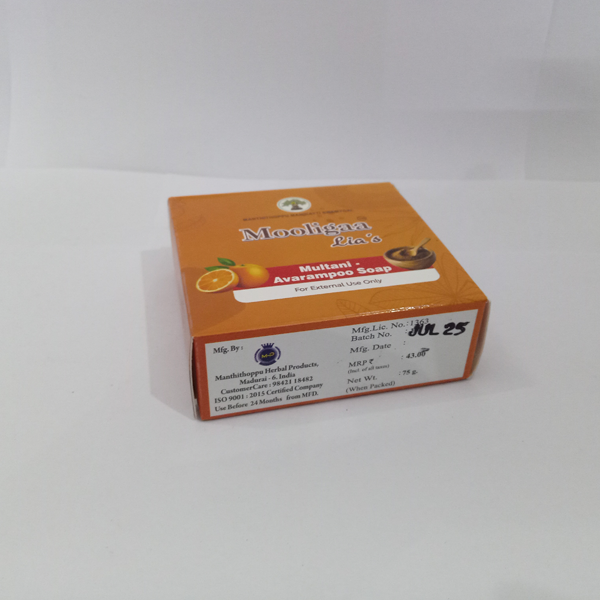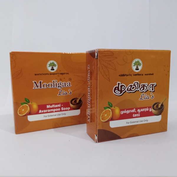 Bring back your skin’s natural glow with Mooligaa Multani Avarampoo Soap by Manithithoppu Herbal Products. This unique Ayurvedic soap combines the richness of Multani Mitti (Fuller’s Earth) and the traditional Tamil herb Avarampoo (Senna Auriculata), known for their cooling, cleansing, and skin-enhancing benefits.