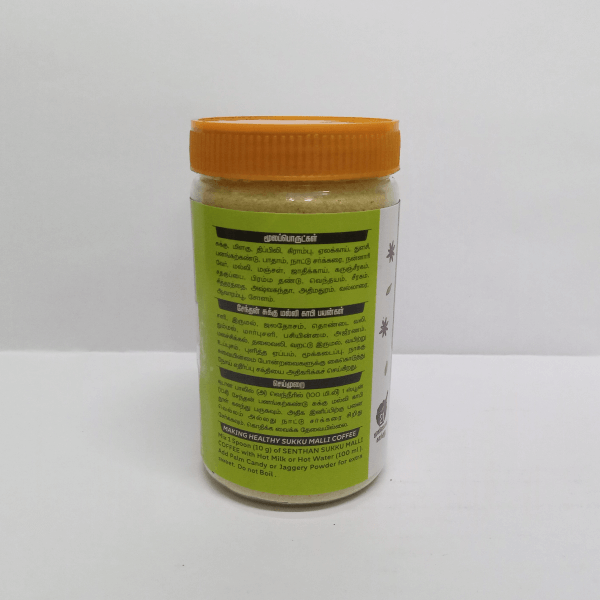 Palmcrystal Chukku Mallicoffee is a traditional South Indian herbal drink blend prepared using Palmcrystal (natural palm sugar), Chukku (dry ginger), and Malli (coriander seeds). It is a comforting alternative to regular coffee, offering warmth, natural sweetness, and digestive support—without caffeine or refined sugar. This blend follows time-tested home-style preparation methods and is suitable for daily use.