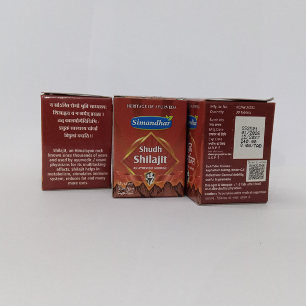 Simandhar Shudh Shilajit Tablets are a natural wellness supplement made from purified shilajit extract, known for its powerful revitalizing properties. Rich in minerals and fulvic acid, this formulation helps increase energy, support male vitality, improve cognitive function, and strengthen bones and joints. It is designed to nourish the body from within and promote long-term health.