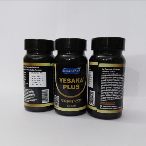 Simandhar Yesaka Plus tablet is a holistic Ayurvedic wellness supplement crafted to support women’s reproductive health, energy levels, and daily vitality. Made with traditional herbs such as Ashoka, Shatavari, Lodhra, Ashwagandha, and Triphala, this tablet formula helps regulate menstrual cycles, reduce discomfort, enhance digestion, and boost overall immunity. It is safe for regular use and designed to keep the body balanced and strong.