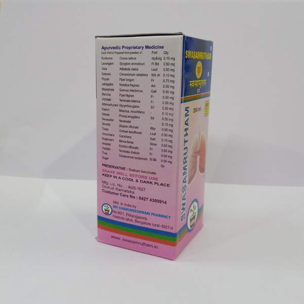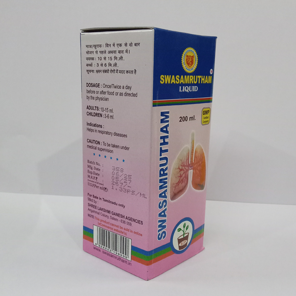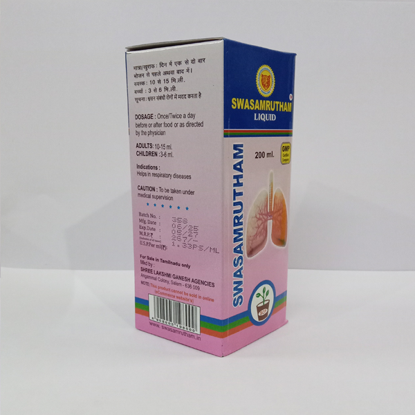 SCP Swasamrutham Liquid is a traditional Siddha medicine herbal tonic formulated to give natural relief from cough, cold, throat irritation, and chest congestion. Prepared with time-tested Siddha herbs, it helps cleanse the respiratory tract, ease discomfort, and support smooth, easy breathing, making it a trusted choice for seasonal cold and throat problems.